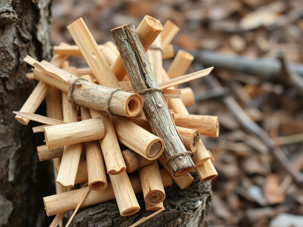 - Обработка: ножом или топориком делите ветку вдоль на тонкие полоски. Не стремитесь получить идеальную ровность, важна тонкость и сухость.